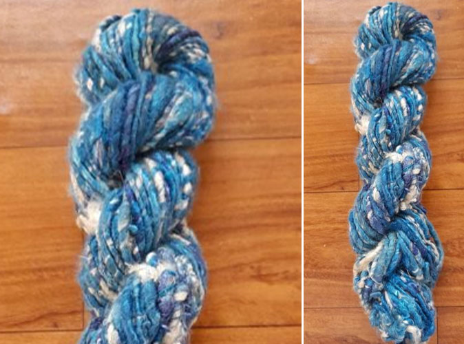 We work with women’s development groups in India to produce this unique yarn and other silk yarn products. Purchasing this yarn provides additional income to support and improve their family earnings.